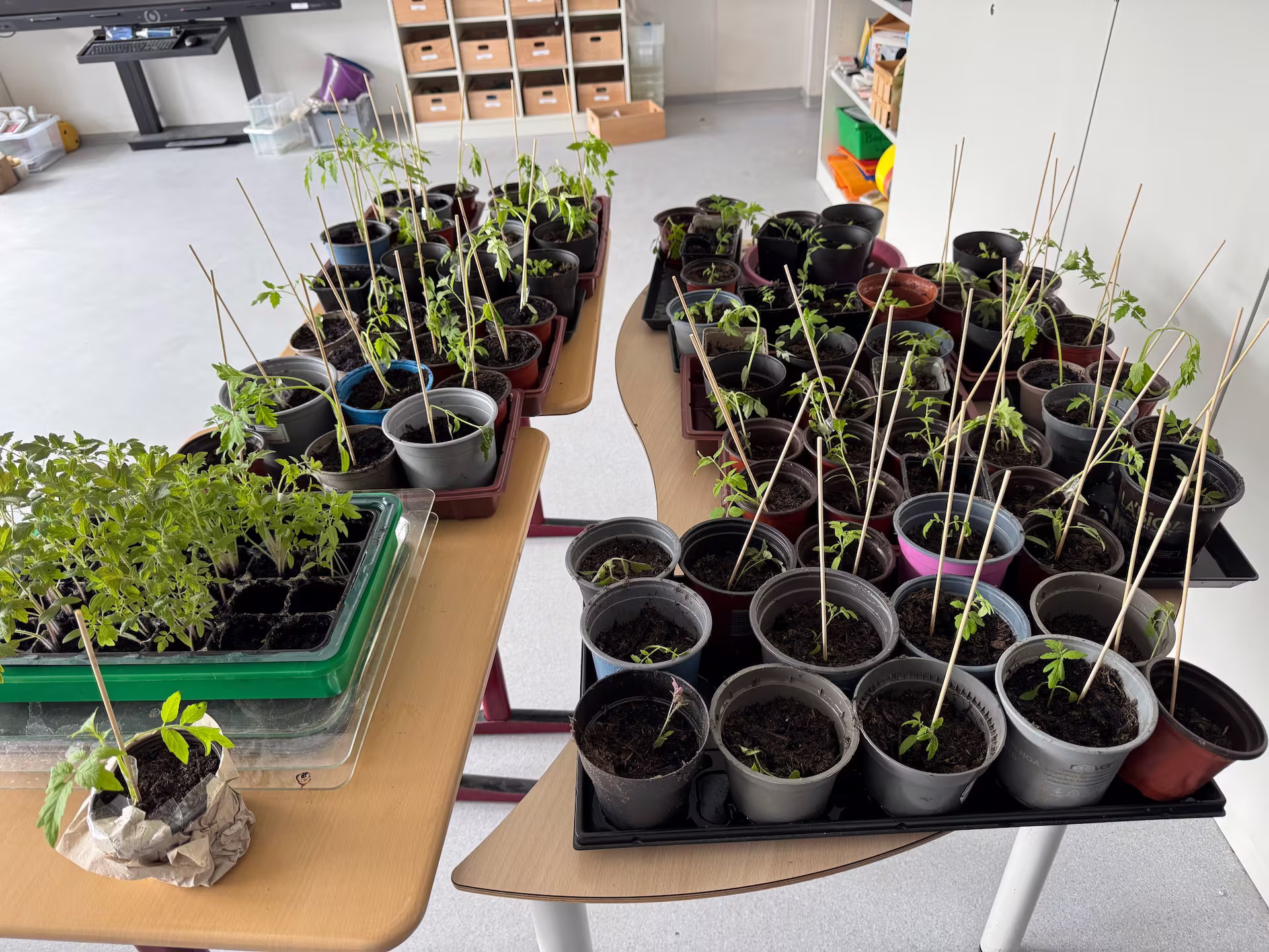 Unsere selbstgezogenen Tomatenpflanzen verkaufen wir an Eltern und Schulmitarbeitende.