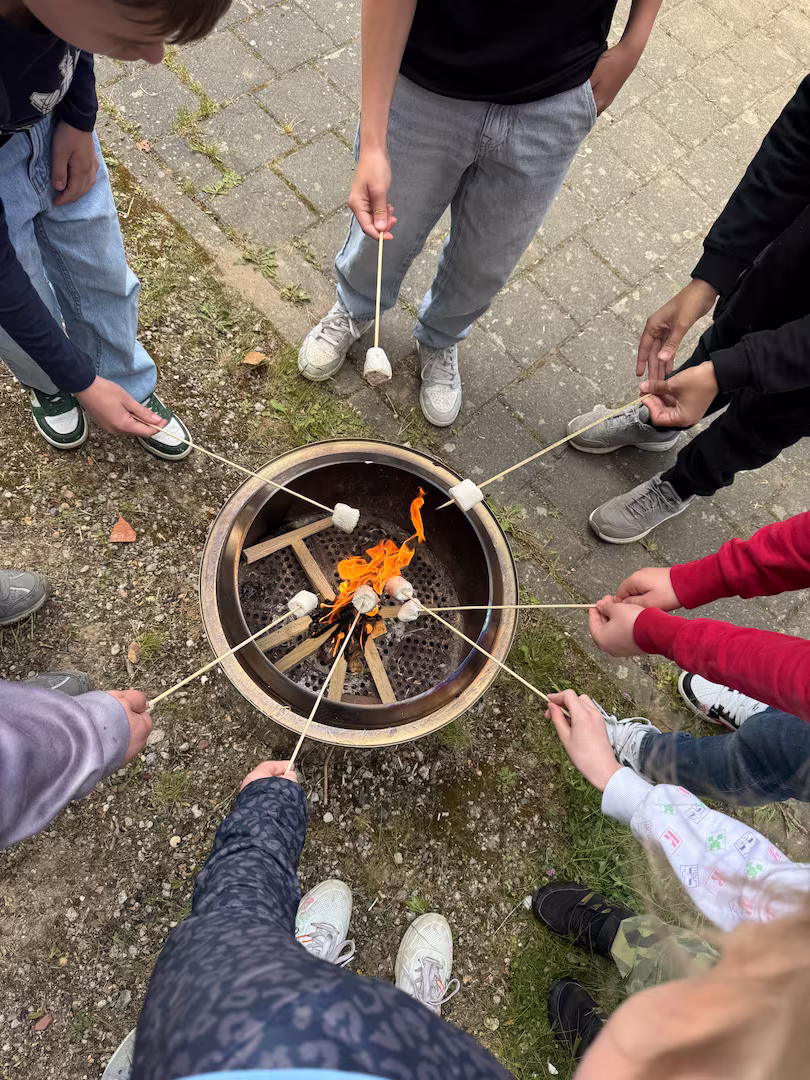 Die Klassen U4 und U5 haben verschiedene Methoden ausprobiert, um Feuer zu machen. Zum Beispiel mit einer Lupe, durch Reibung und mit anderen kleinen Hilfsmitteln.